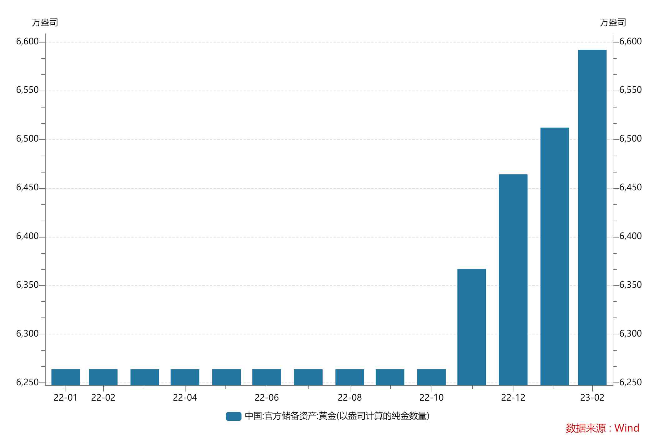 据悉,除了投资性黄金需求上升,央行购金也仍在继续。根据国际货币基金组织(IMF)公布的数据,截至2023年1月底,全球官方黄金储备共计35362.8吨。今年1月份全球央行官方黄金储备净增31吨(较上月增加16%)。而这种20-60吨净购进量的区间已经持续了10个月之久。中国央行方面,2月末中国人民银行黄金储备达2050.3吨,较1月末涨约24.8吨,已是自去年11月份以来,连续第四个月增持黄金。