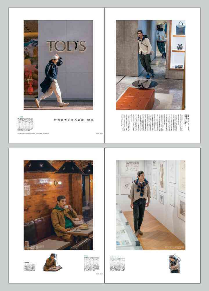 在最近一期杂志中,演员町田启太被邀请到银座拍摄了这组「逛街」大片。