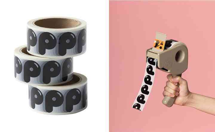 最后一件产品,印有 P 字母的胶带,将会用在每个包裹的包装上,同时也上架一同销售。这也多亏了崛内诚一的设计,如果用了普通字体库的常见字体,再做出这么一卷胶带,想必也很难让人埋单。