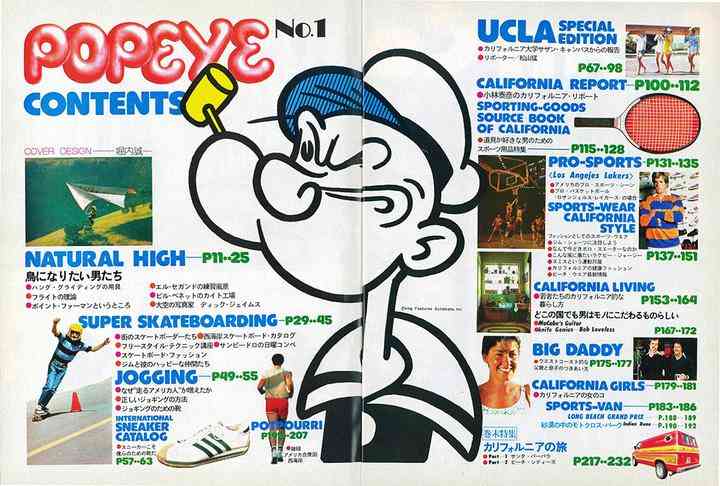 在随后的几期,《POPEYE》更是让来自美国的滑板运动和冲浪文化,在日本流行了起来。