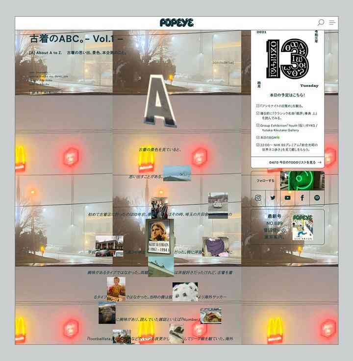 Yota Shiraishi 是负责这次网站制作的设计师与工程师,他将《POPEYE》杂志独特的排版风格挪到了网站上,不过是会动、会说话、会唱歌的《POPEYE》。