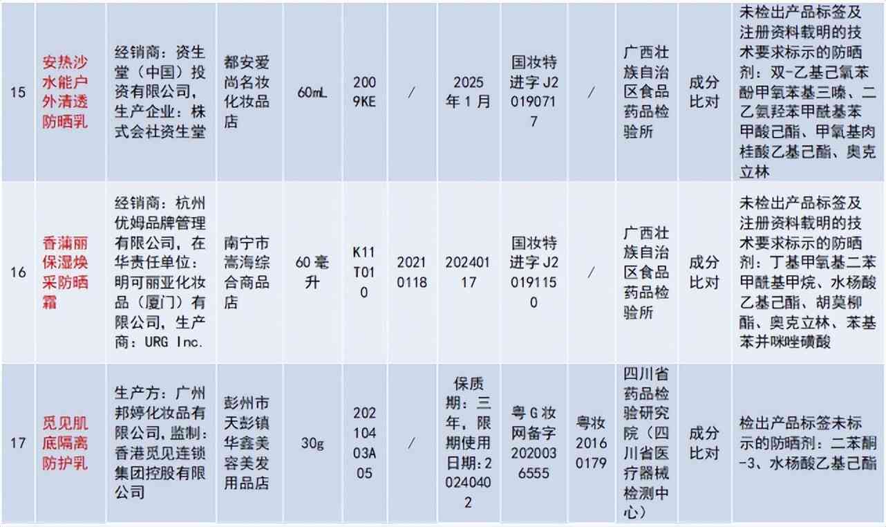 记者梳理发现,近年来资生堂“安热沙”产品多次被通告不合格:
