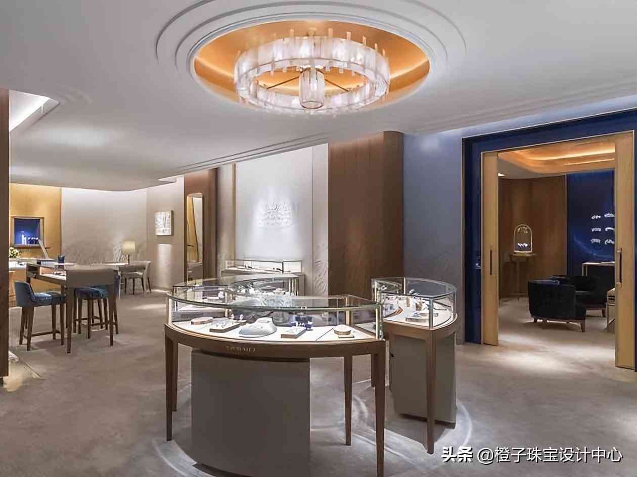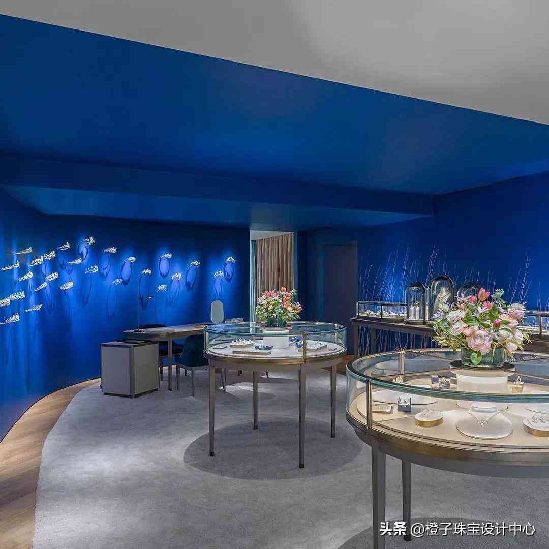 旗舰店硬装以珍珠、灰褐和古铜色调交相辉映,软装则以闪光蓝呈现出玻璃般的透明质感。微妙的光影借助镜面反射,将空间视觉效果无限放大,更衬托出珠宝的璀璨光芒。