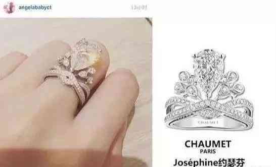 Angelababy的尚美巴黎婚戒就是水滴形,看上去十分有垂感。Angelababy大婚那年,梨形钻石大火不少。