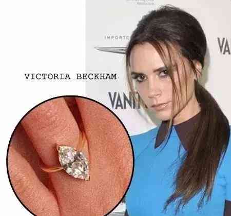 结婚17年维多利亚就收获了贝克汉姆的13枚大钻戒,他们的枚订婚戒指就是足足3克拉的马眼形。这个形状的钻石与贝嫂搭配是相当完美了。