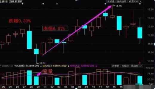 2、下方对应的量柱是缩量或者是缩量行情