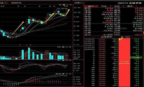 同时可以看到,第二天市场是小幅高开后就出现不断上涨走高的局面,并且便有价增量涨的走势,那么A点尾盘就是进场的较好时机,后面就可以享受到盘面上涨的快感。