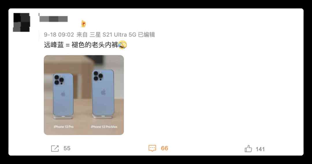 于是在网上有博主将 iPhone 13 Pro 远峰蓝称为 “老头乐”……