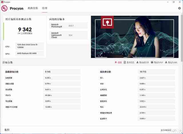 使用ULProcyon软件测试显卡应对常用创作软件的性能,测试项目为图片编辑与视频编辑的基准测试,图片编辑项目调用LR、PS,视频编辑项目则是调用PR,对常用Adobe创作软件的小伙伴具有一定的参考性。