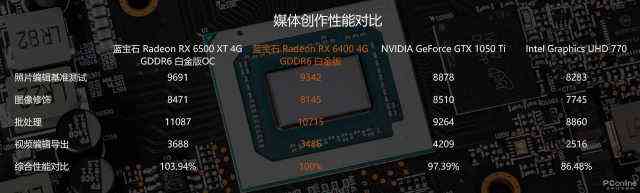 媒体性能测试小结:经过AMD几版驱动更新之后,A卡在PS、LR照片处理效率上有所提升,RX6500XT的照片编辑测试成绩相比首发时提升5%左右,LR照片批处理分数提升了20%,RX6400的照片编辑测试成绩也超过了RX6500XT首发测试时的成绩,满足日常的图片处理显然没什么问题。