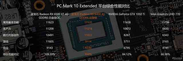 日常体验测试小结:PCMark10Extended测试会综合整套平台的性能进行评估,基于同样的测试平台下,RX6500XT和RX6400在总分上没有拉开较大差距。但由于其余两款显卡在性能上差距过于明显,所以整体分数被前面两款A卡大幅超越。