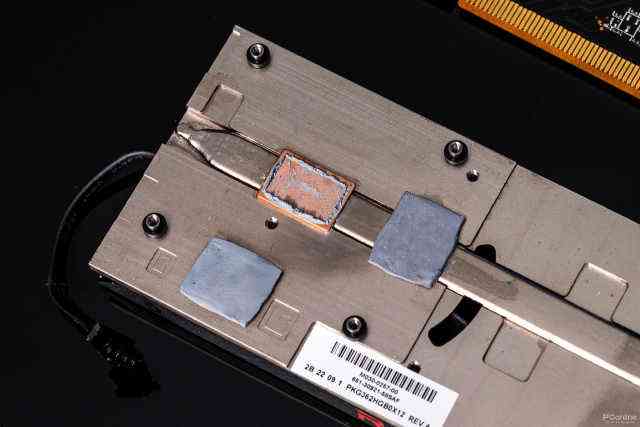 核心对应部分采用铜板覆盖,负责贴合核心,显存对应部分则是有导热硅脂负责传导热量。