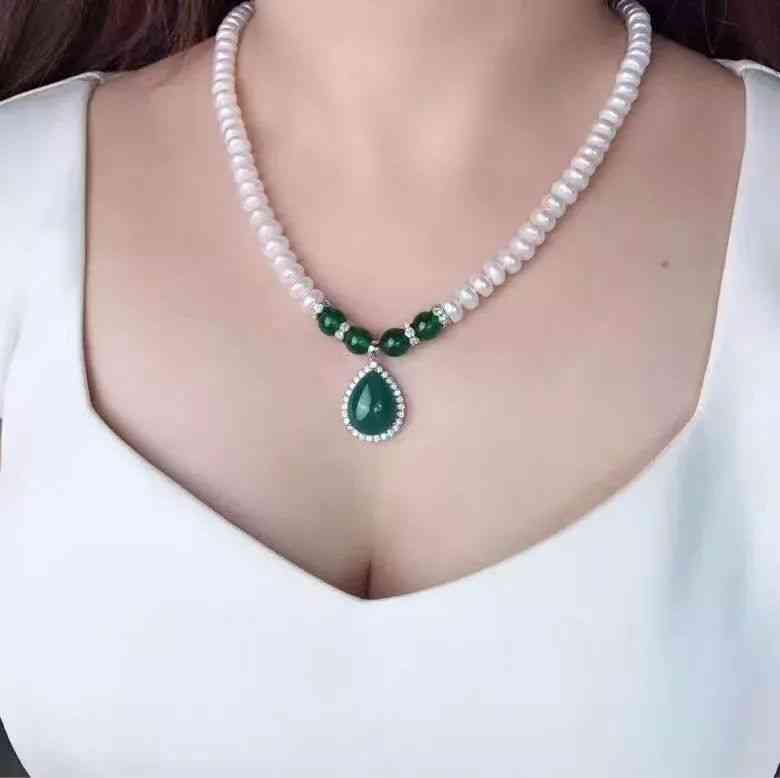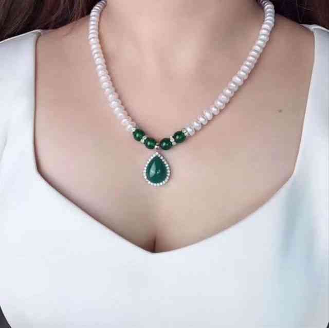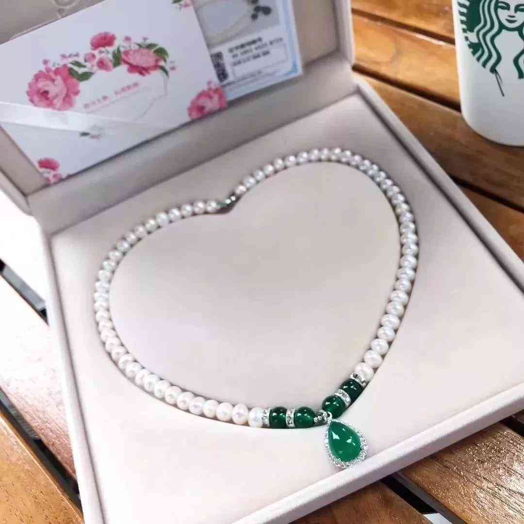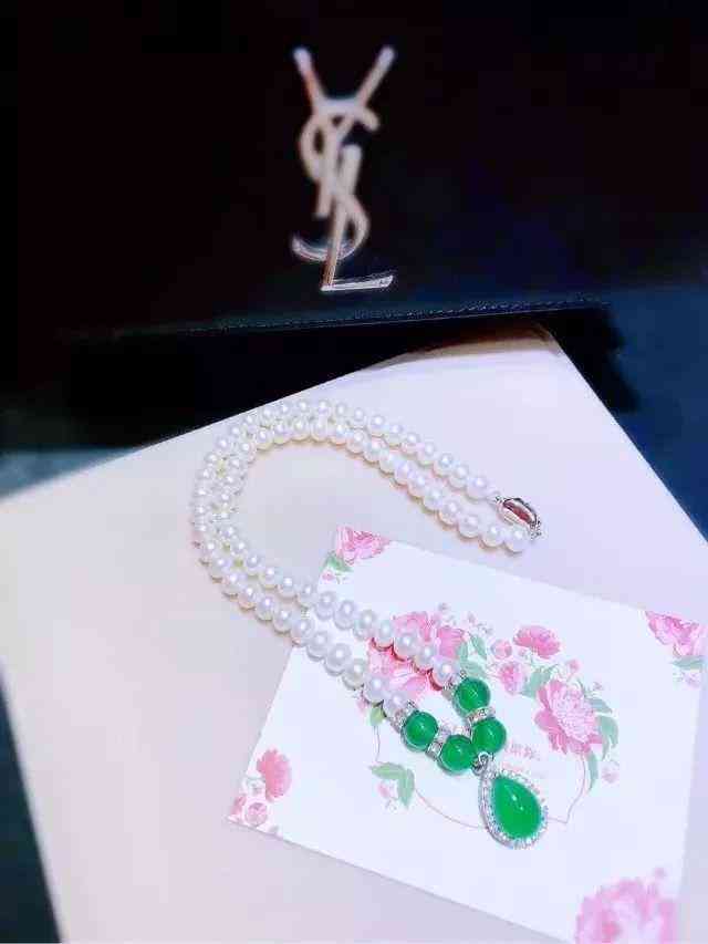▣ 老凤祥珍珠项链/金镶玉足金平安扣/福袋吊坠