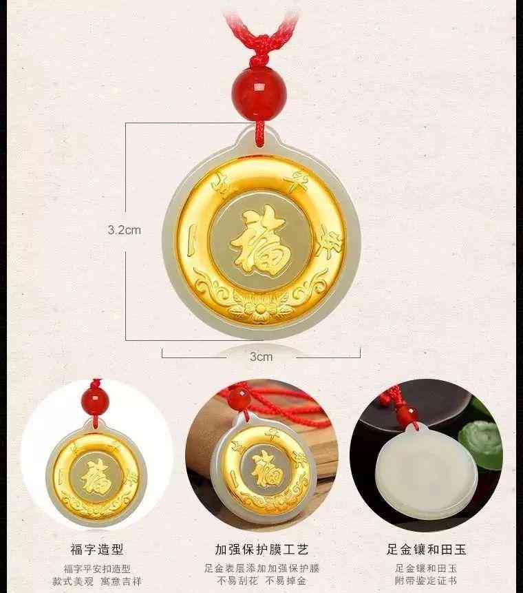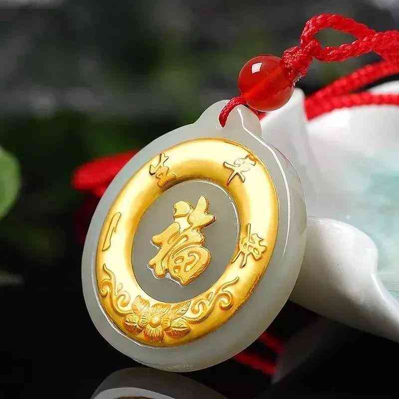 金镶玉足金平安扣吊坠,送平安,健康常伴