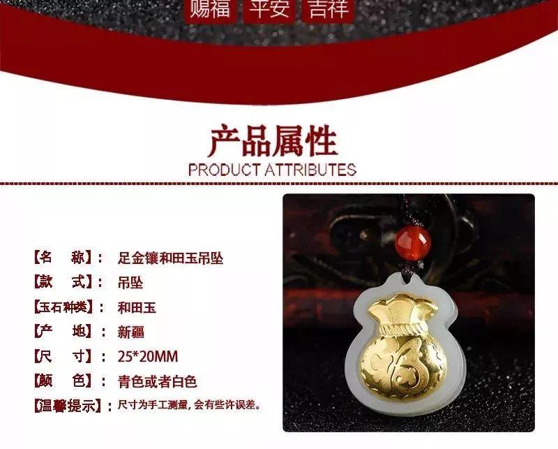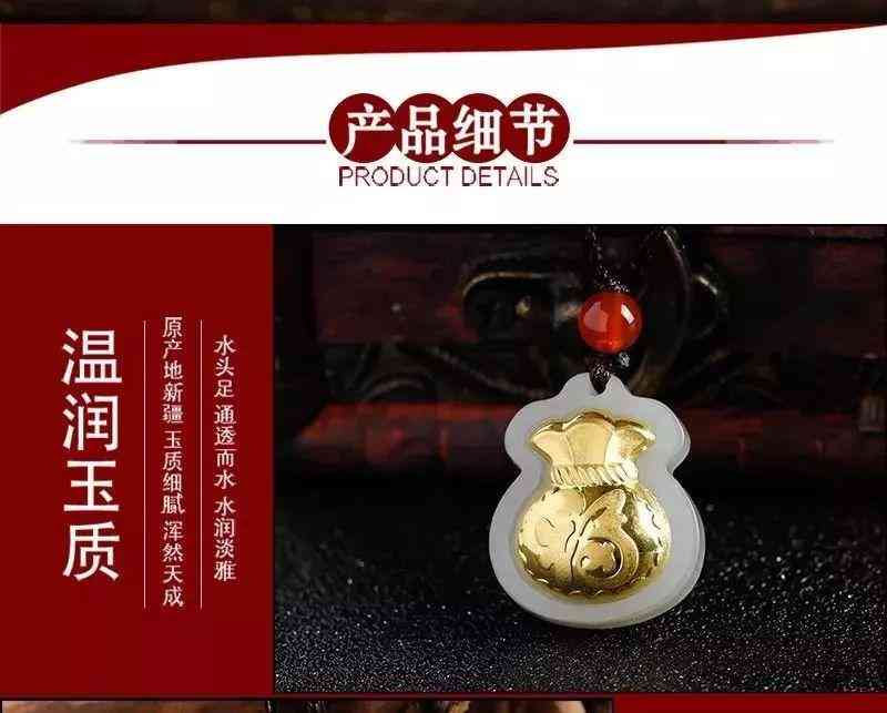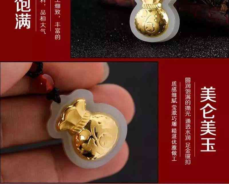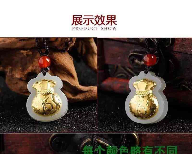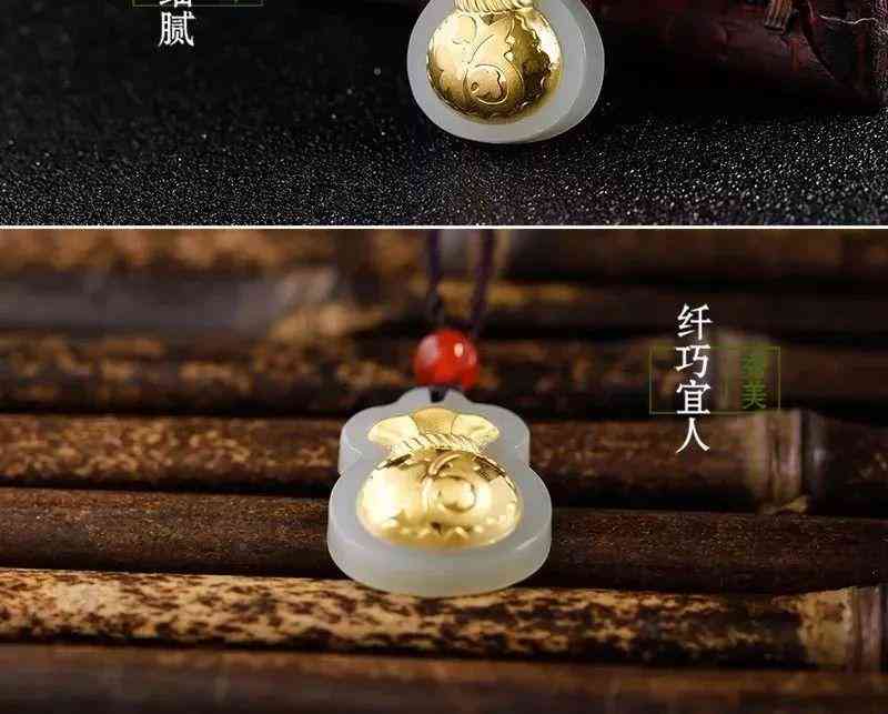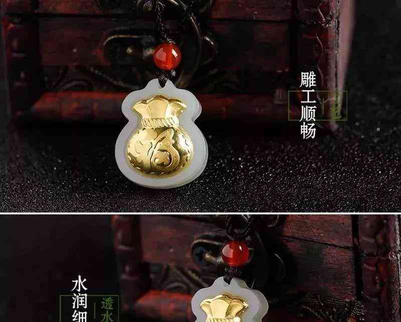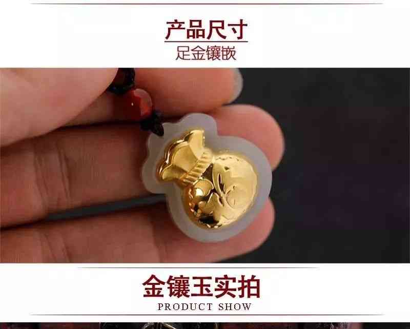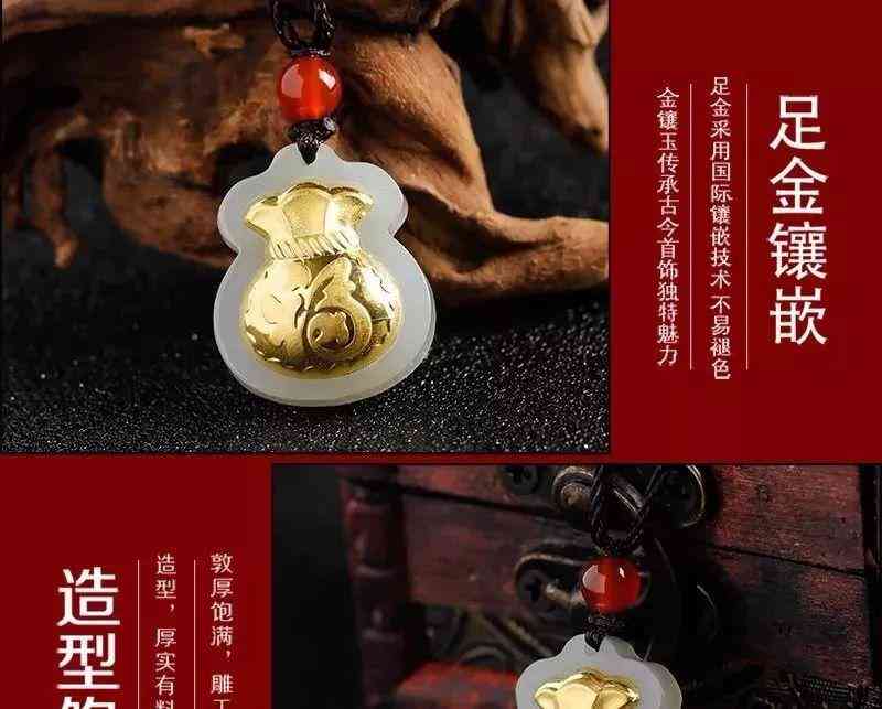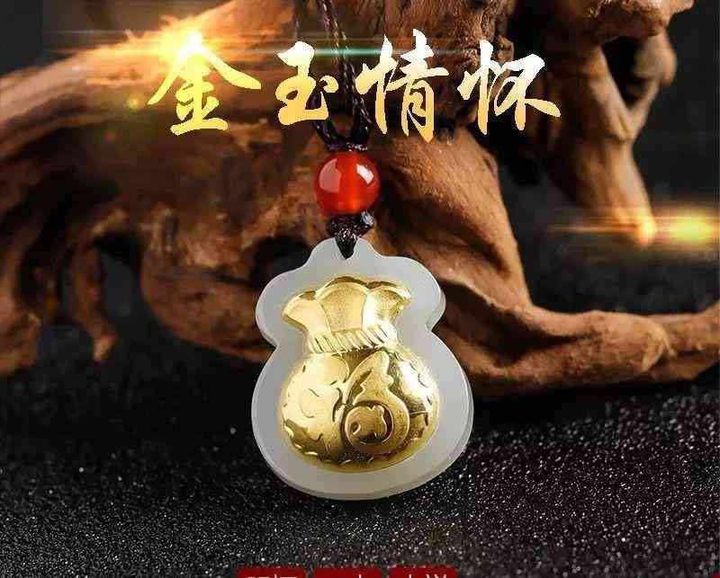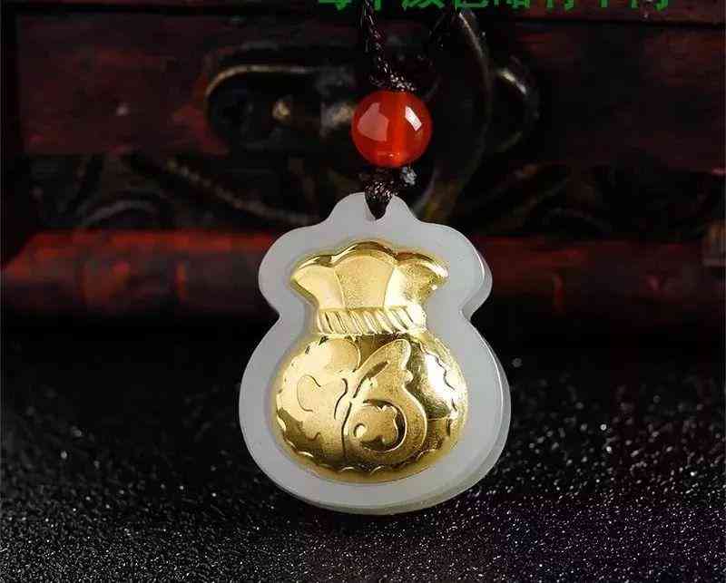 金镶玉足金福袋吊坠,送福气,荣华富贵