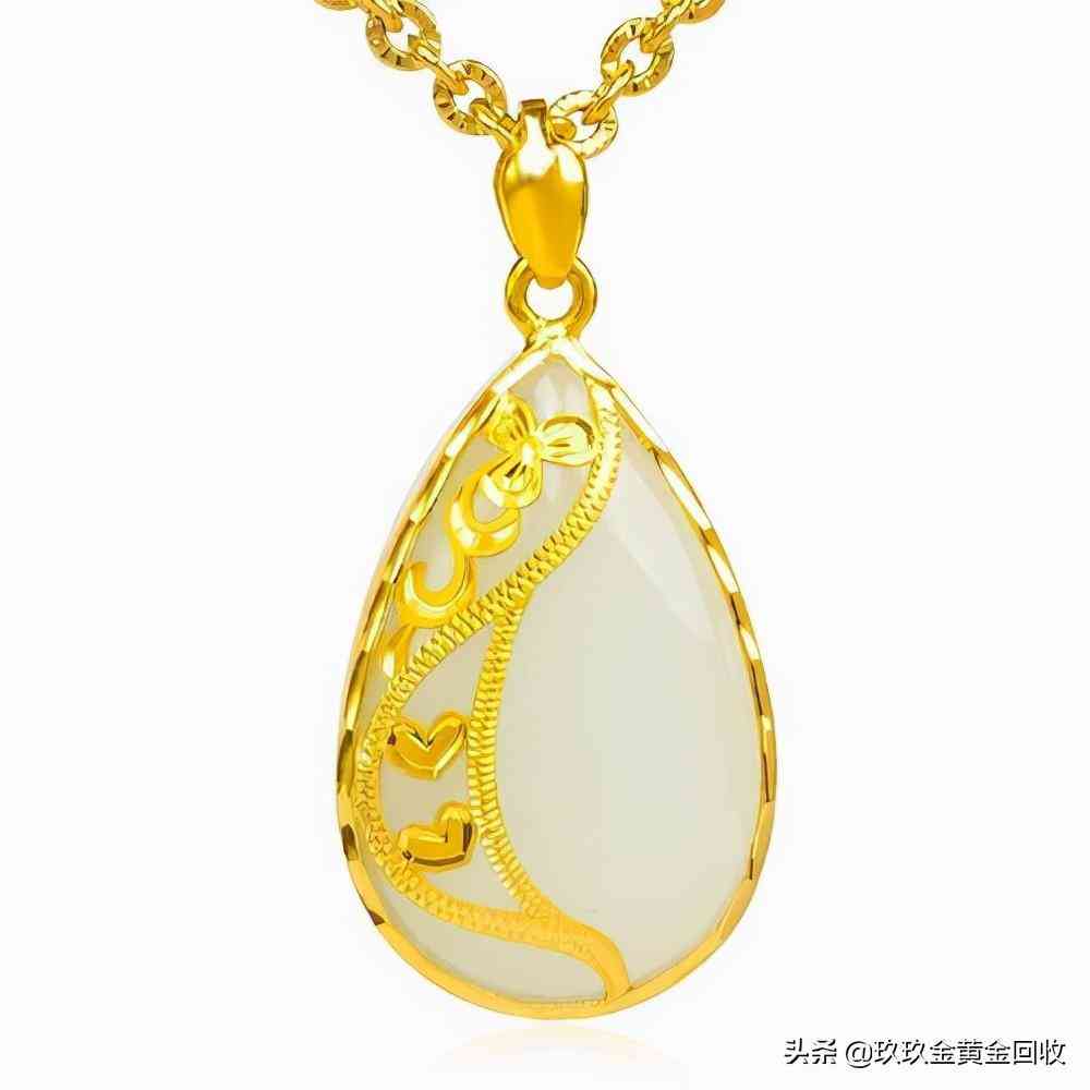 接过吊坠一看,还特别新。就这个金镶玉,一块翡翠玉石,外面裹着一层黄金,就是一个典型的金镶玉,通常金镶玉都是这样的工艺,但这个包边是足金的,我说这个定制金镶玉直接卖了,实在可惜了。