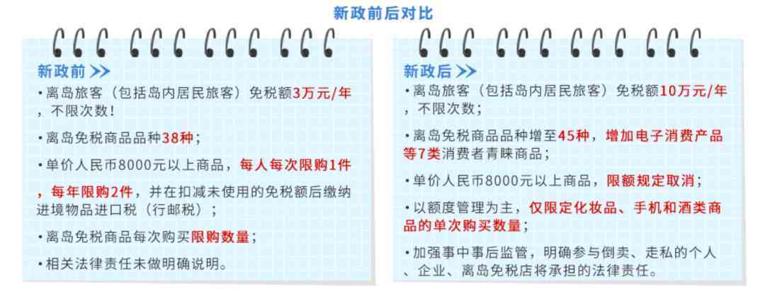 离岛免税新政前后对比(来源:海南省旅游和文化广电体育厅官网)