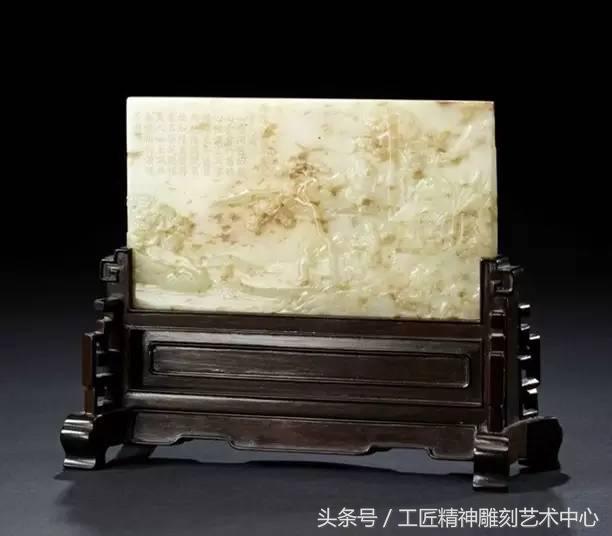 又叫插牌子,是用薄片大块玉料为屏心,在其上用浮雕技法表现山水人物,然后再配硬木的屏座。由于大块玉料少见,故插牌子也是比较名贵。选料以白玉、青玉、碧玉、翡翠居多。插牌子见于汉代,明清时期盛行。