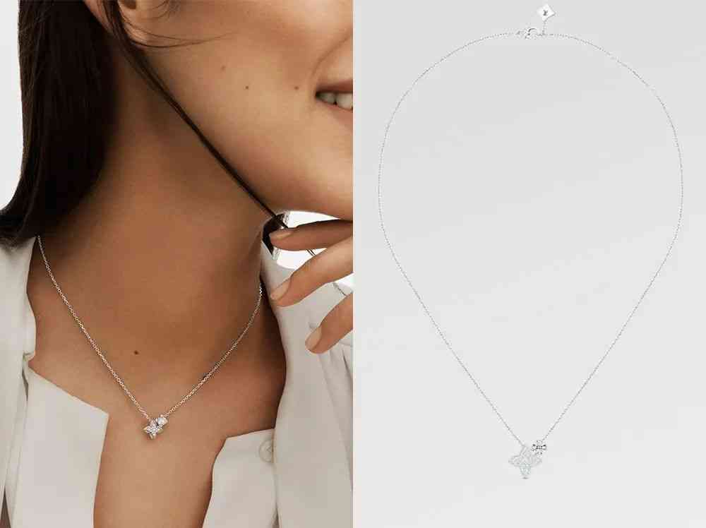 同系列还有Double Pendant铂金项链,依然是“一花一钻”的主题,巧妙的碰撞完全不会撞款,职场派对两相宜~