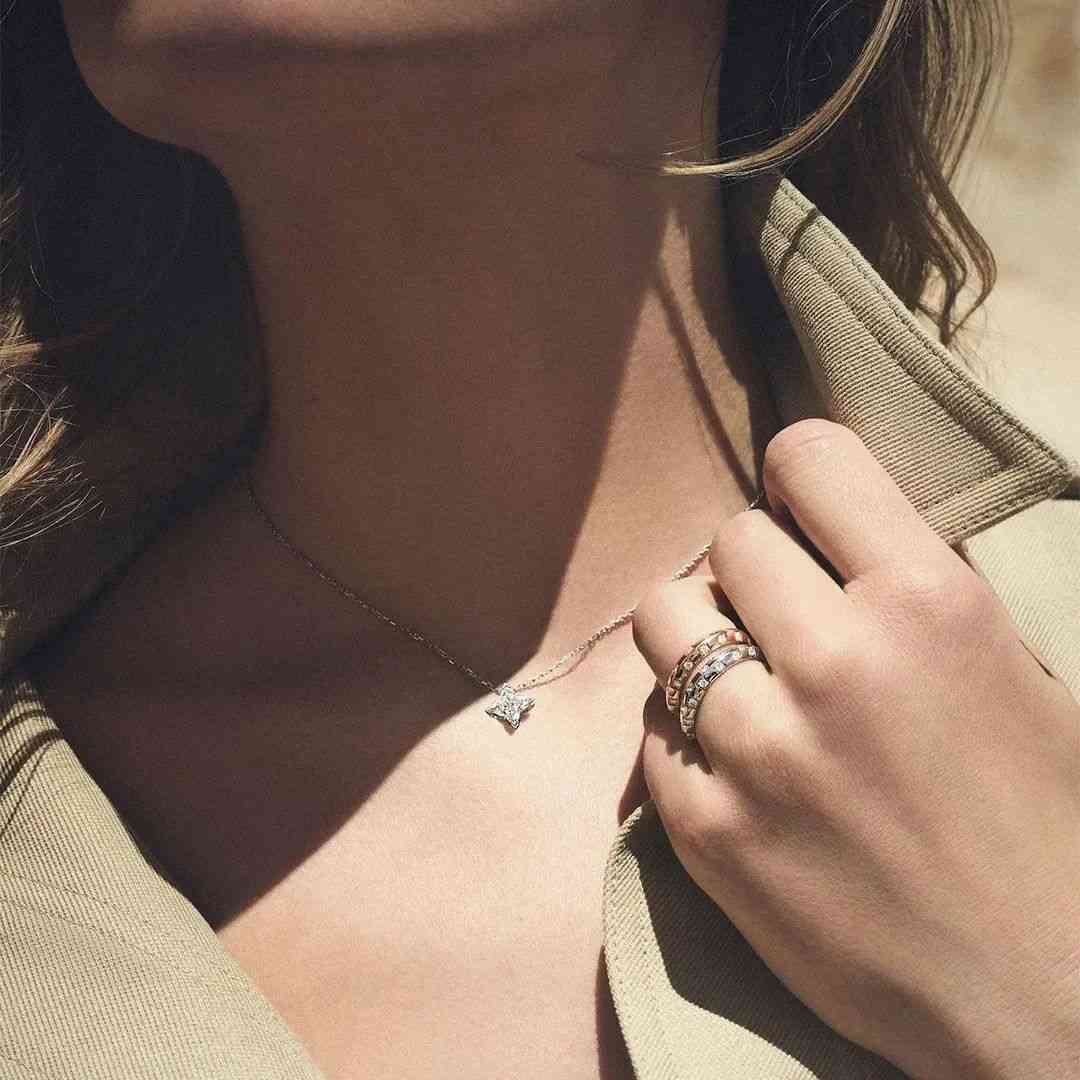 很多职场妹子通勤时会尽量选择一些体量小,却足够独特的项链。下面这款Pendant18K白金项链,不管是Party、通勤,还是日常凹造型,小小一颗就显得吸引力十足。