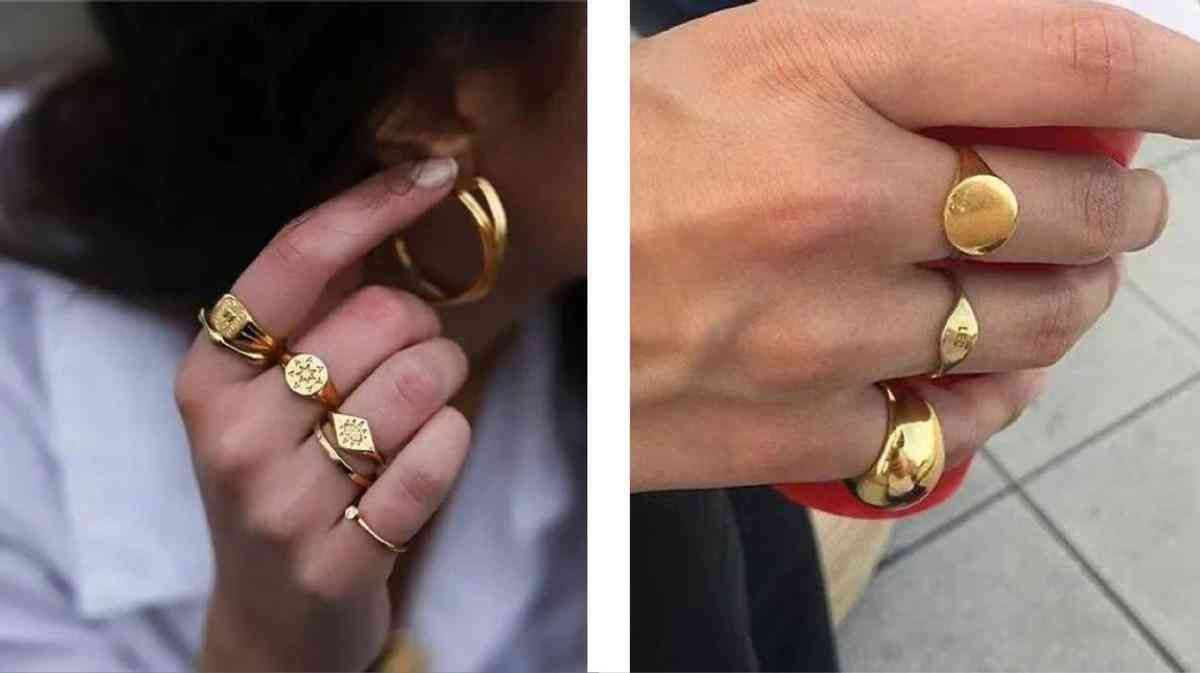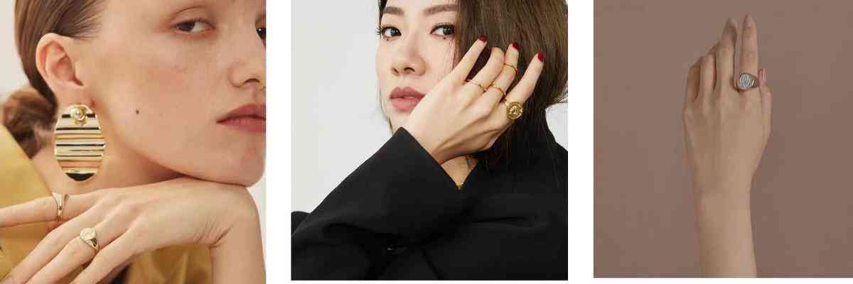 喜欢极简风的女生,可以选择镜面的印章戒指,搭配细环叠戴,可是彻底打破印章戒指的经典风格……