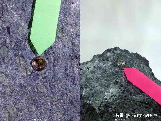 下图为金伯利岩产出的钻石,其中绿色箭头所指的钻石产自我国的辽宁,红色箭头所指的钻石产自山东蒙阴。金伯利岩中不仅仅会产出有宝石及的钻石,还会有橄榄石、石榴石、铬透辉石等宝石矿物产出,在一定程度上增加矿床的综合利用,不过这些宝石的价值往往不及钻石的价值。