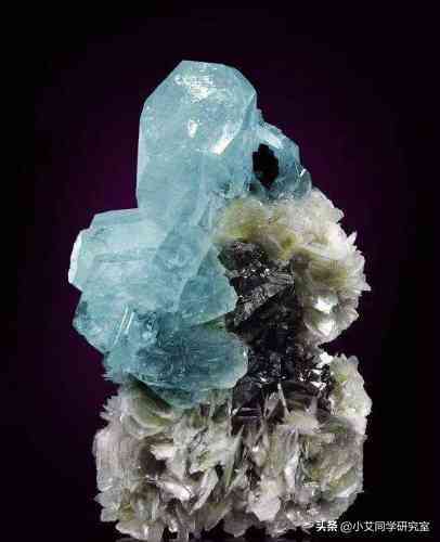 下图为产自伟晶岩中的海蓝宝石,我国最典型的矿床就是新疆可可托海地区所产的海蓝宝石了。伟晶岩——顾名思义,就是形成该类岩石的矿物晶体都非常的巨大,在矿床学中,一般将矿物颗粒大于3厘米称之为伟晶,但是宝石矿物的尺寸往往明显大于该数值。伟晶岩在形成的过程中,最大的特点就是含有很多的挥发组分,比如说F、Cl、OH-等,所以伟晶岩中形成的宝石矿物也常常含有一些挥发性的组分,除了海蓝宝石以外,还有碧玺、尖晶石、水晶、红蓝宝石等。