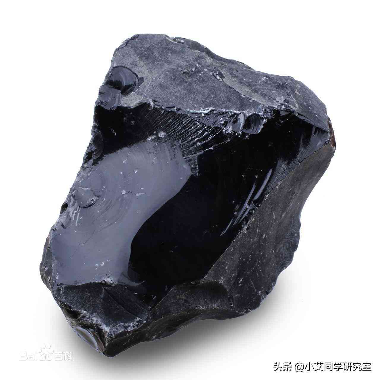 下图为黑曜石,其实黑曜石本身就是火山喷发过程中形成的火山玻璃,结晶程度很小,属于火山岩的一种,SiO2含量往往较高,一般在60%-75%之间,其余的成分主要为Al2O3/FeO/Fe2O3/K2O/Na2O等。