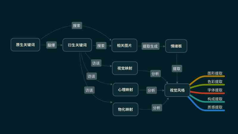 制作情绪板时,首先要明确原生关键词,然后脑爆挖掘衍生关键词,接着搜索相关图片并提取生成情绪板,另外访谈用户收集衍生关键词映射,最后通过情绪板和关键词映射来提取视觉风格。