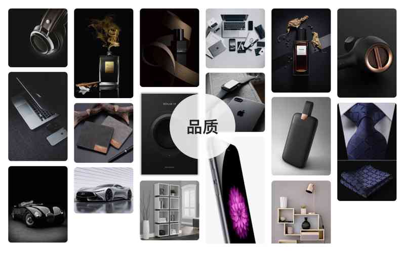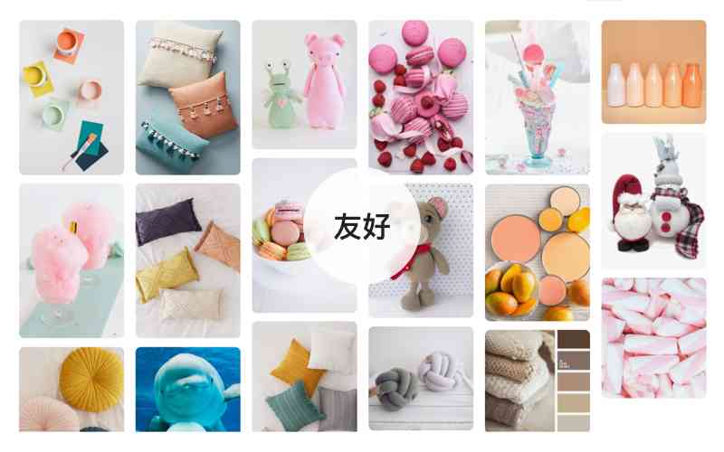 物化映射可以理解为联想到的具体事物,比如:品质——iPhone、宝马、香奈儿;简洁——白盘子、玻璃、白纸;友好——枕头、毛绒玩具、海豚等。