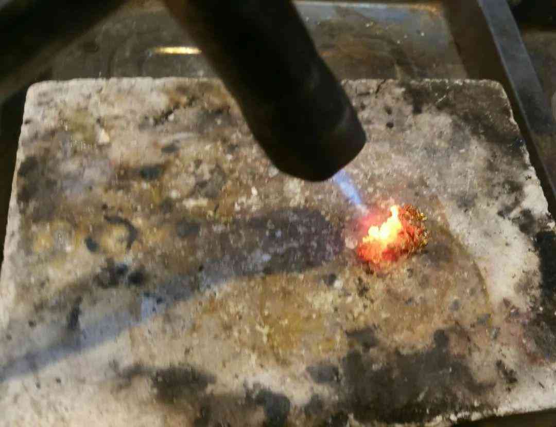 黄金烧至熔化时,用火枪嘴对准凹坑底已锥有空洞孔的地方吹烧,就把挡在空洞孔口的火炭灰吹走,黄金就流进了空洞内。然后,把喷枪头斜着吹,再用小木棍沾上一些硼砂给火焰助燃时,用小木棍轻轻拨刮一下,把火炭灰挡盖住已注满黄金的洞口。神不知鬼不觉的就偷走了一滴小金珠~