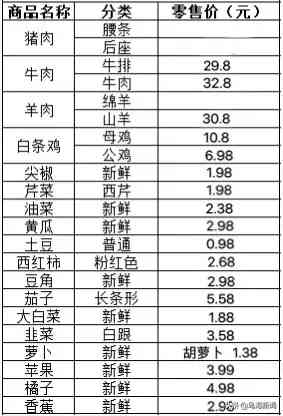 (数据来源:乌海市部分生鲜超市,以上价格仅供参考,具体价格以实际为准)
