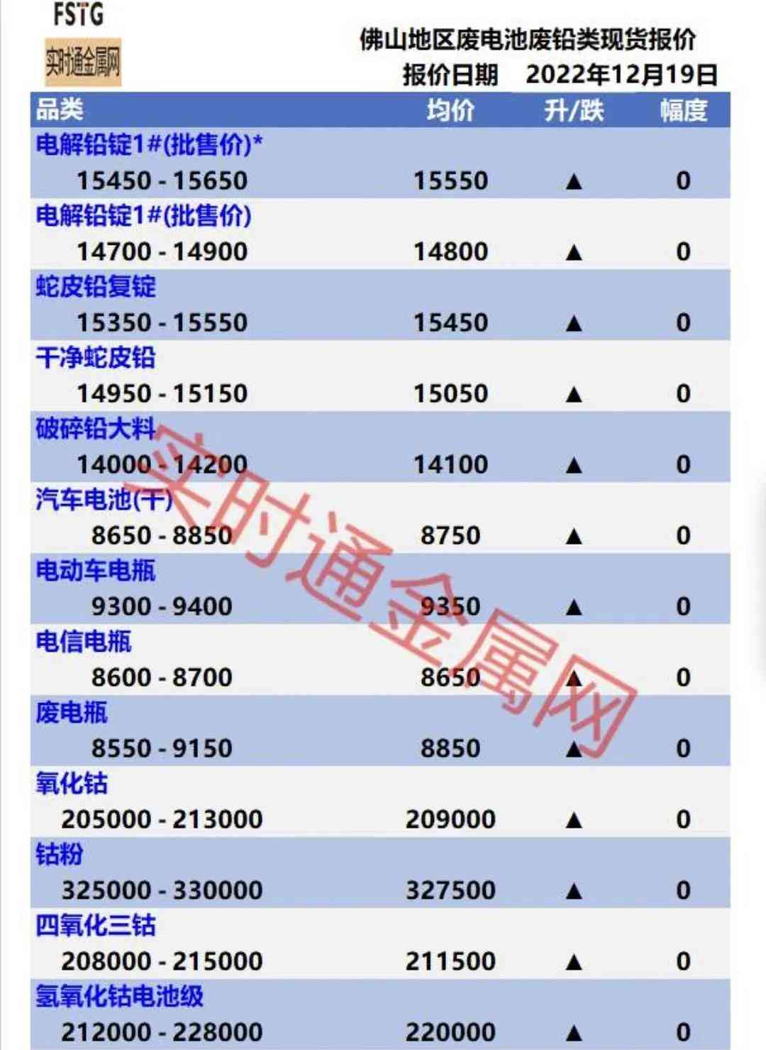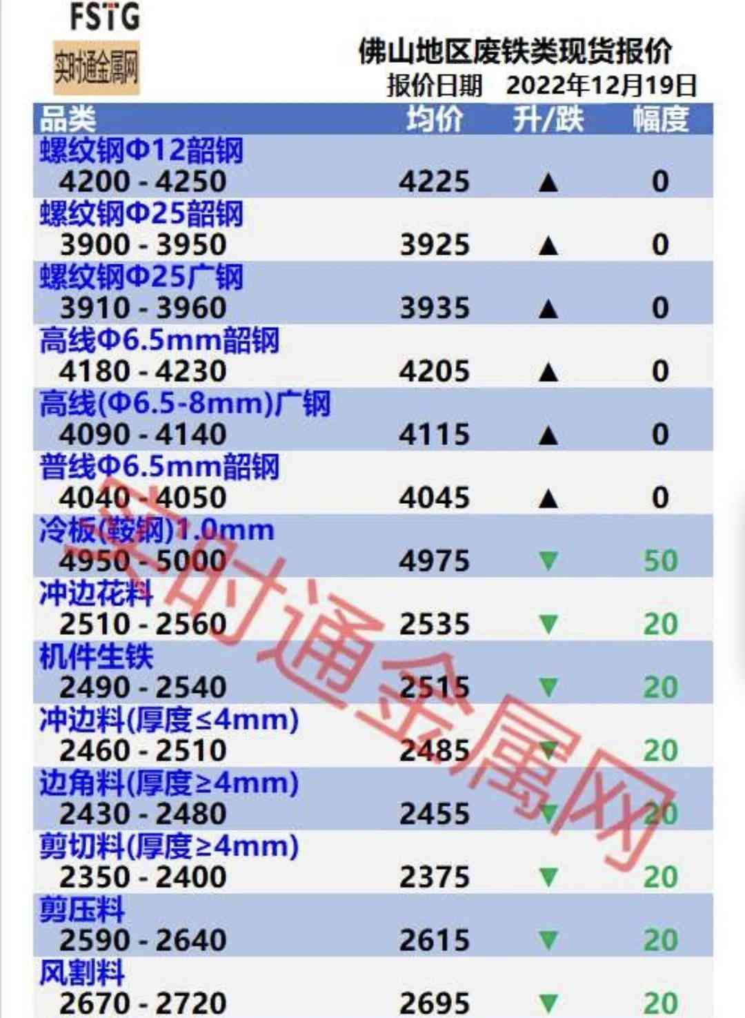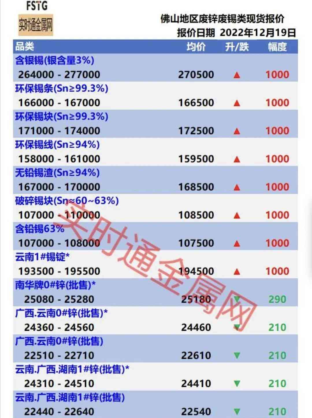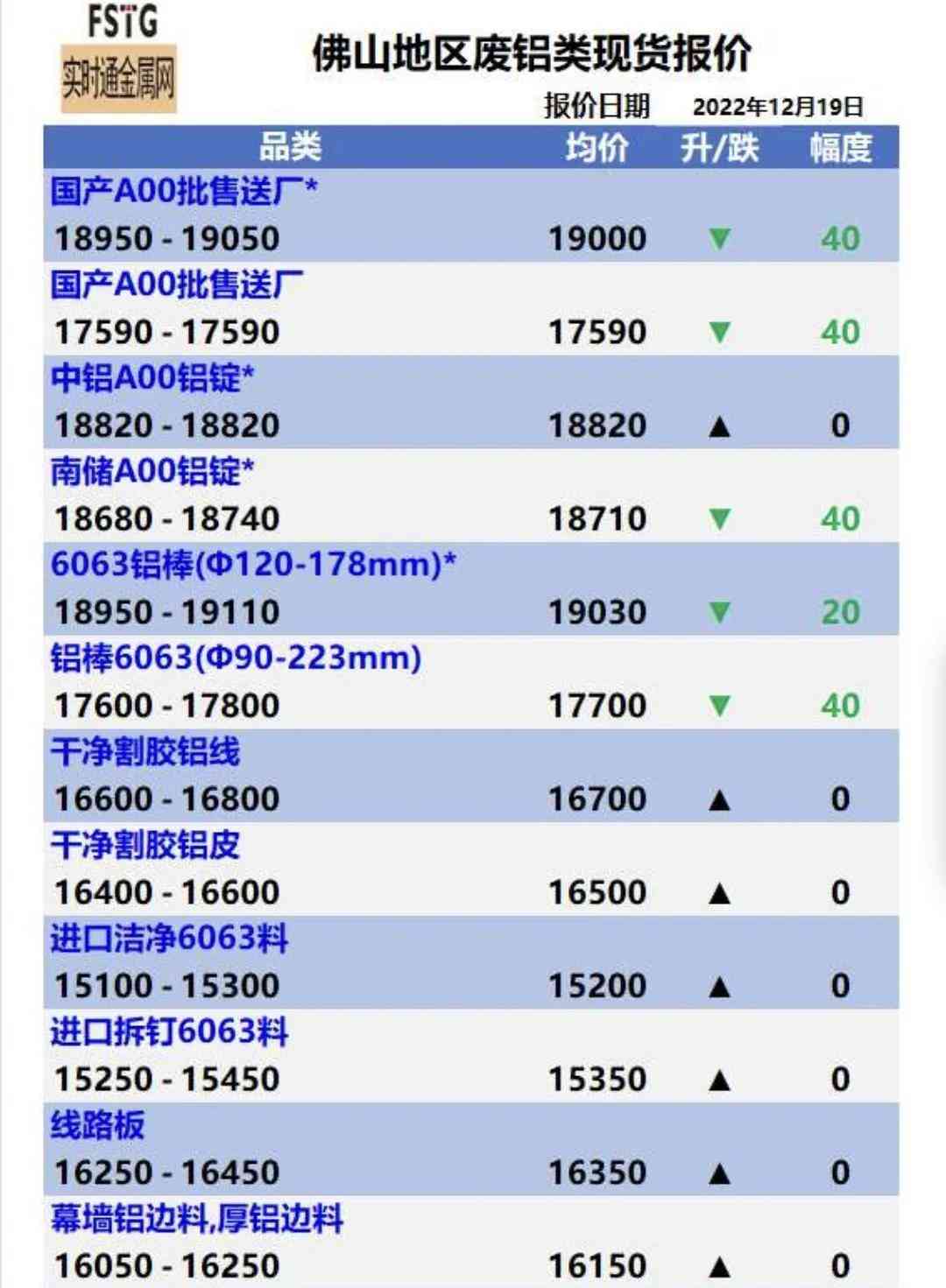 佛山地区12月19日金属报价