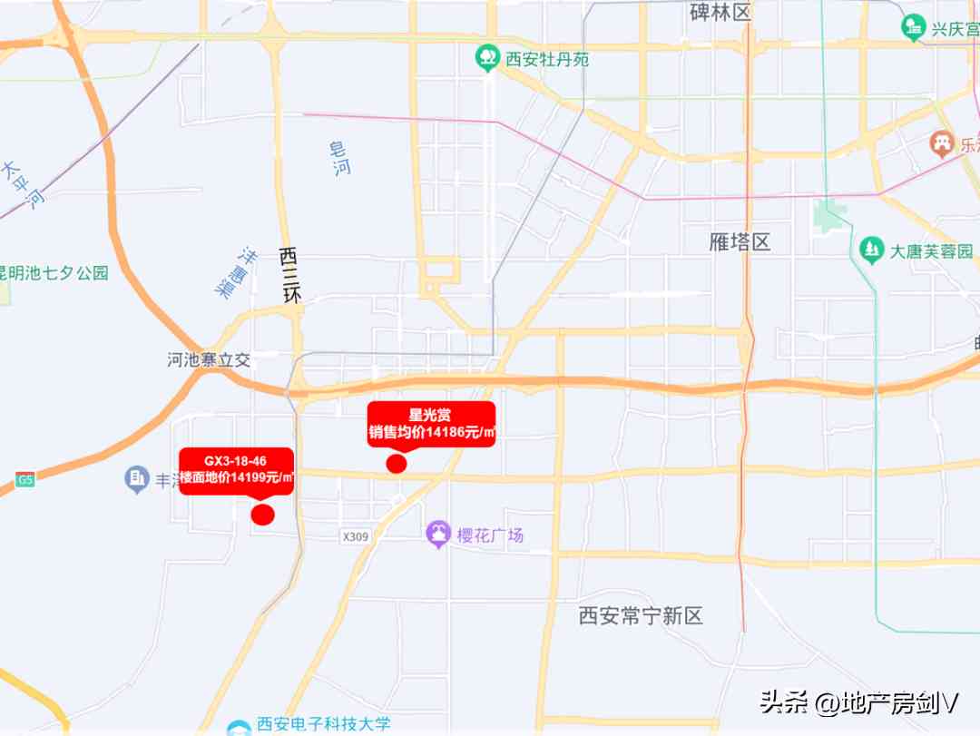 西侧一路之隔则是约10万平方米的郭杜公园,另外周边还坐拥雁南公园、郭杜公园、长安公园、樱花广场等。