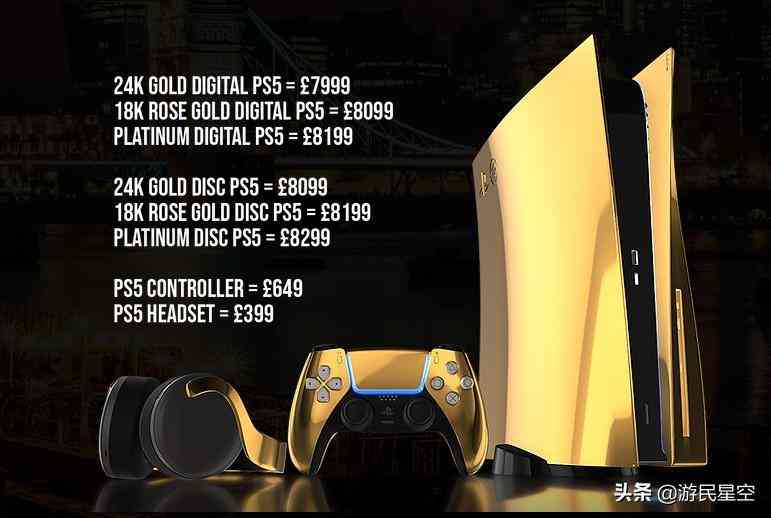 Truly Exquisite(一家奢侈品个性化定制公司)将于9月10日开始接受之前报道的PS5系列的预订。这款24K黄金版主机的预购价格为7999英镑,约7.1万元人民币。此外,你还可以得到价值649英镑(5791元人民币)的金色DualSense手柄和399英镑(3560元人民币)的金色PS5耳机。