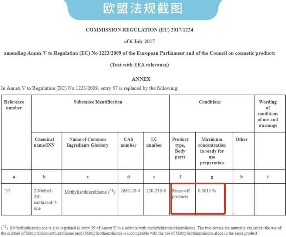 在欧盟,它是禁止加在水、乳、霜等驻留型产品中的,不过在洗护用品中能用,限量是 0.0015%。