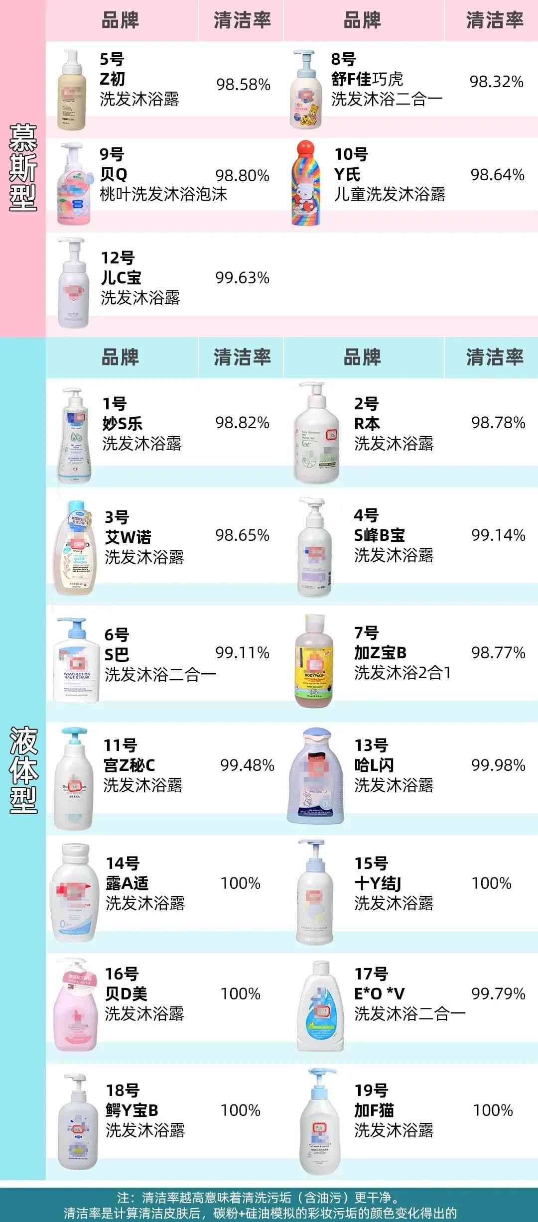 整体来说,19 款样品的清洁率都还不错,日常洗头、洗澡都可以洗干净。