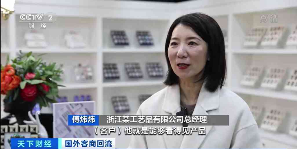 浙江某工艺品有限公司总经理 傅炜炜:客户可以看得见产品,还可以试用,对这个产品的各个方面了解得更加透彻一些,他也就很快地下了订单。