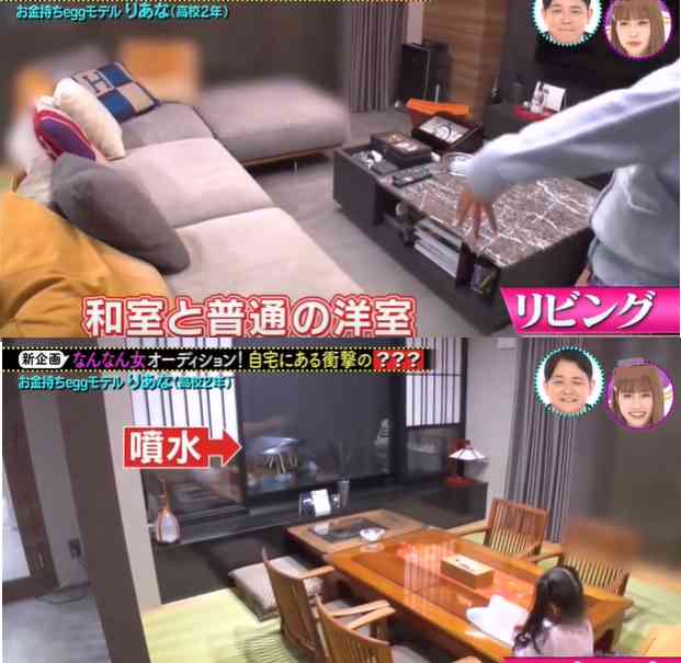 不过,他们一家4口只是住在其中一户,房间总面积约220平米,客厅的装修风格是一半日式一半西洋风,日式那边还设置了个小喷泉。