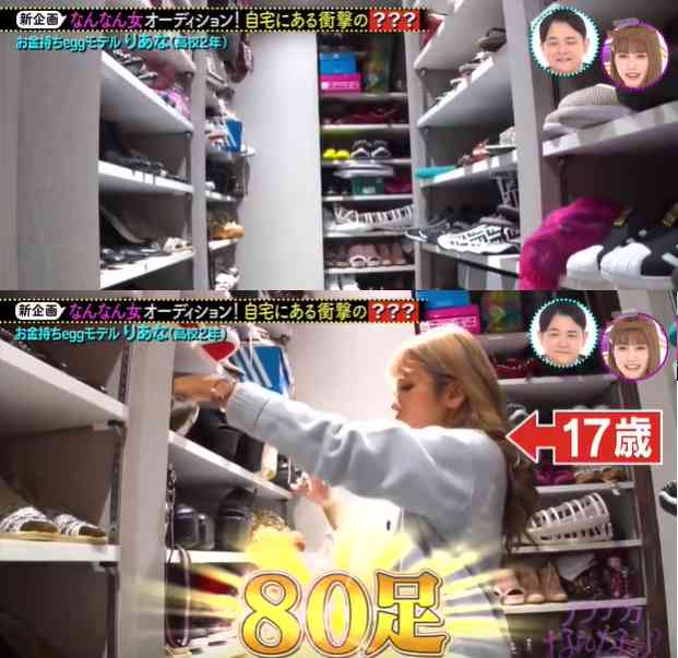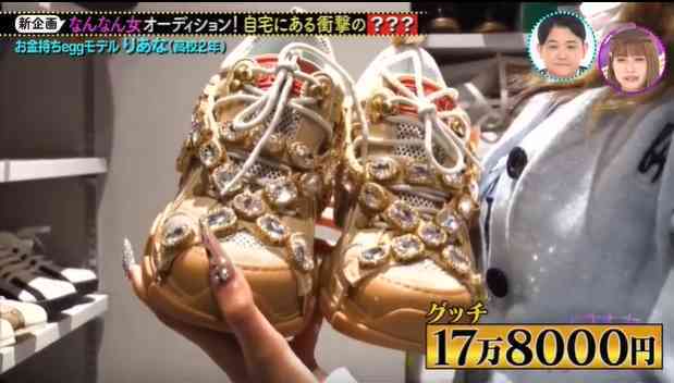 她最爱的是一双GUCCI的运动鞋,土豪金为主色,鞋面上点缀了无数颗宝石,浮夸又奢侈,价值17万8000日元(约1万RMB)。