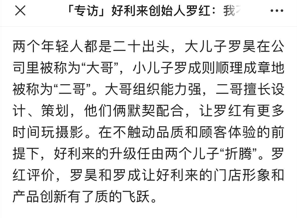 2020年,大儿子罗昊正式被任命为好利来的执行总裁,