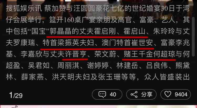 蔡加赞和汪圆圆在恋爱两年多后结婚,当年那场婚礼花了将近8亿: