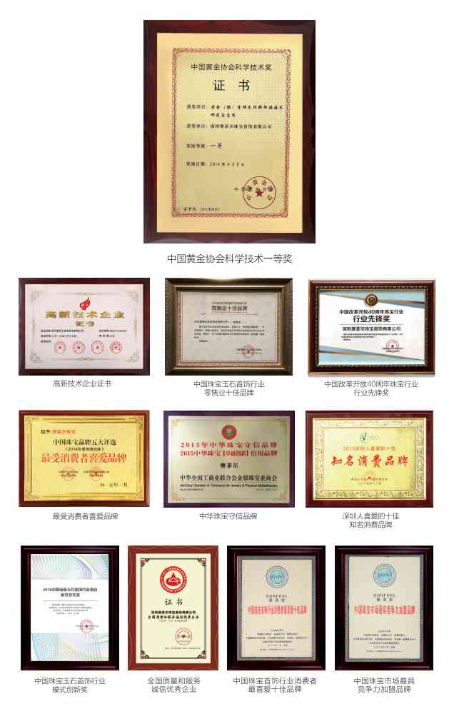 2023年6月13日,赛菲尔珠宝荣膺“品牌之光·罗湖力量”2023珠宝品牌发展大会发布的《2022年黄金珠宝品牌价值与品牌强度评价结果》: