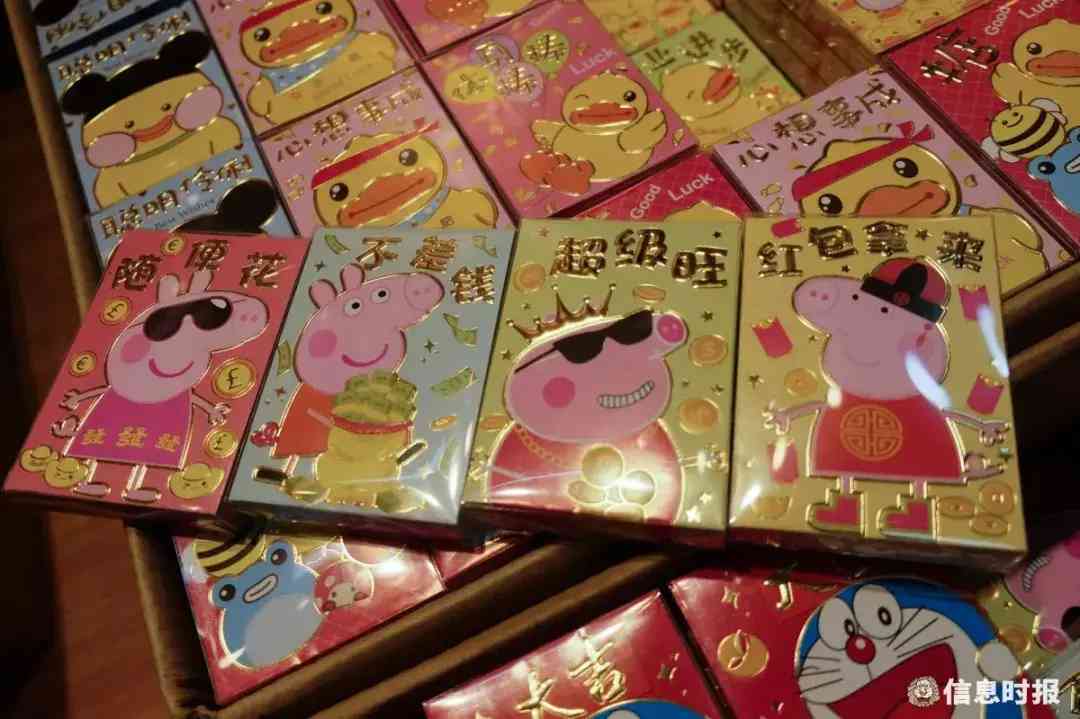 其中商家在利是封的祝福语上,也是各显神通,有白话俚语“发过猪头”、“猪笼入水”“掂过碌蔗”,也有时下的流行语“一夜暴富”、“吃嘛嘛香”、“猪事大吉”。而彰显小猪佩奇奶味气息的利是封标语,如“随便花”“不差钱”“超级旺”“红包拿来”也颇受市民喜爱。市民郭先生说,“今年是猪年,我家的小孩除了喜欢带小猪佩奇的手表,还特别跟我说今年特别想收到小猪佩奇的利是。”