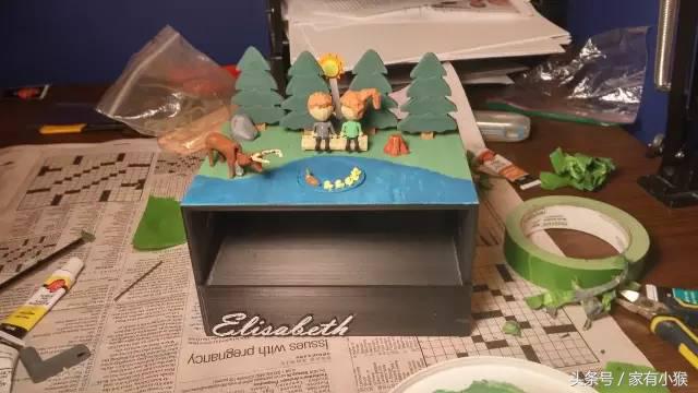 为了让这个礼物看起来更加美观,完美主义的他还要把这个盒子的里里外外都按照设计都涂上油漆上色。