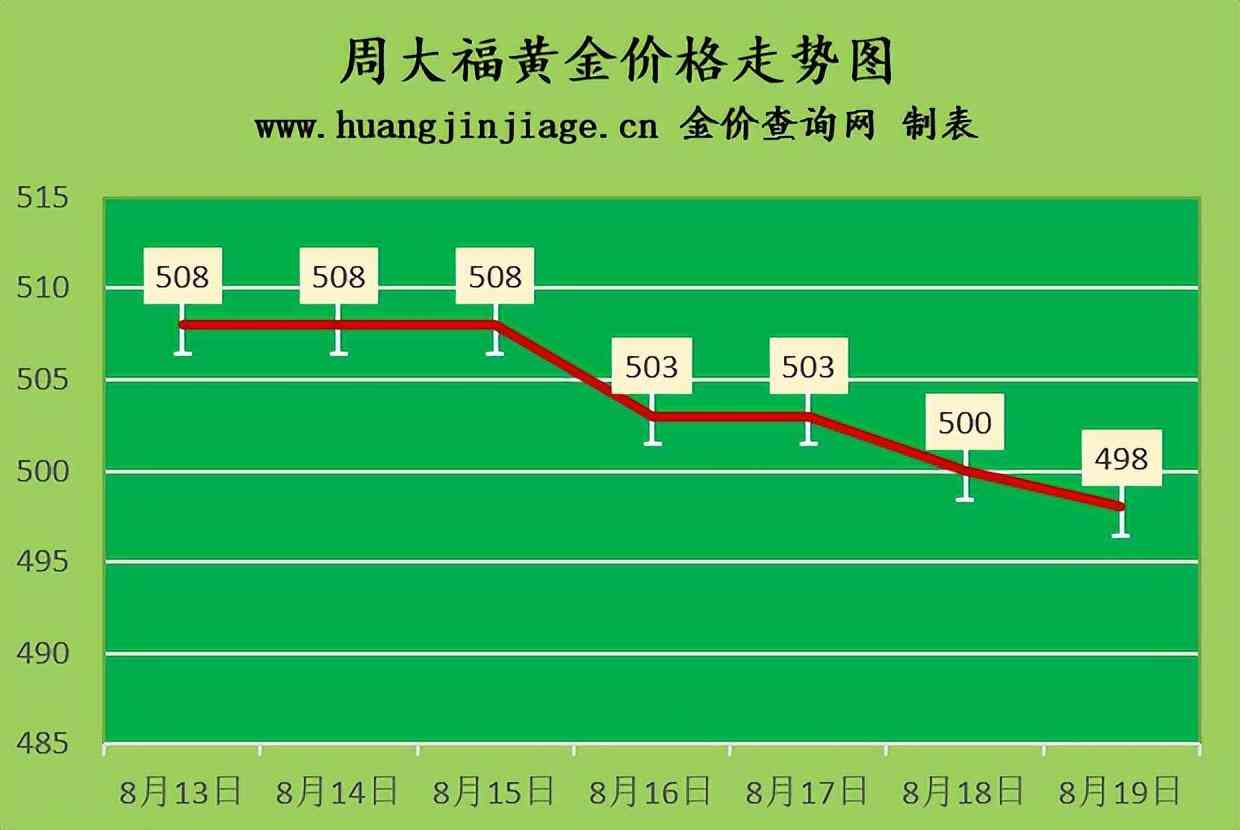 周大福黄金价格498元/克(跌2元),六福黄金价格498元/克(跌2元),周生生黄金价格497元/克(跌2元),金至尊金价498元/克(跌2元),谢瑞麟金价497元/克(跌2元),上海老凤祥黄金价格503元/克(跌2元),上海老庙黄金价格497元/克(跌1元),菜百金价496元/克(持平),周大生金价488元/克(跌2元),中国黄金价格496元(持平),金大福金价494元/克(跌2元),潮宏基金价498元/克(跌2元),周六福黄金价格499元/克(跌2元)。