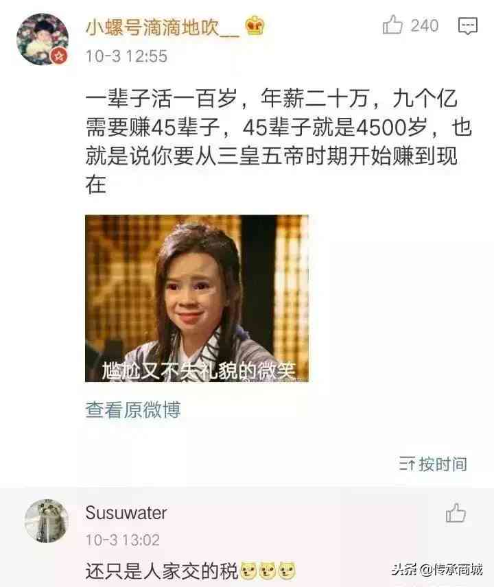 那些月薪5000的普通人尚且知道守法上税,这些年入几亿的公众人物,享受着比普通人多几百倍、甚至几千倍的酬劳待遇,过着比普通人好几百倍、几千倍的生活,却还贪心到想尽办法钻法律的空子,良心何在?