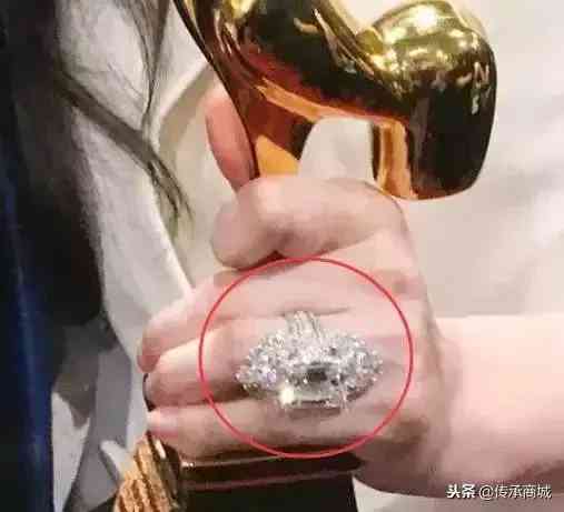 从2011年开始,范冰冰左手无名指上一只佩戴着一只翡翠戒指,从不离身。这个四爪金镶的翡翠蛋面“老坑、玻璃种、三分水”,翡翠界人士估价上千万!