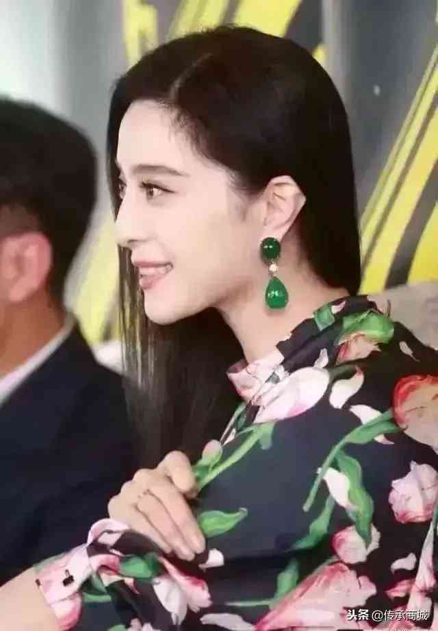 这对冰种帝王绿翡翠耳环,蛋面很大,戴起来很有分量,不知道范冰冰挂在耳朵上疼不疼?这种在普通人眼里很高端的帝王绿翡翠耳环,在范冰冰这只是一般的首饰。