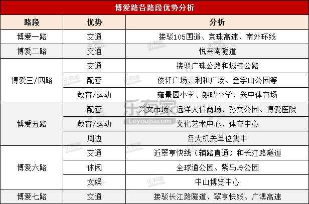 交通方面:博爱路各路段均有各自交通优势,但博爱六路和博爱七路因更靠近翠亨快线,交通优势更明显(注:翠亨快线车程约5-6min可直接驶入深中通道)。